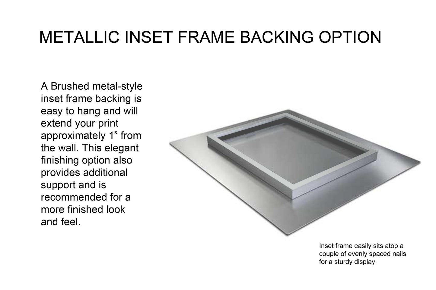 • Two hanging options: Choose from Ready to Hang backing for an economical hanger, or Metallic Inset-Frame backing for a more finished look and feel. Each offers a modern, floated wall display