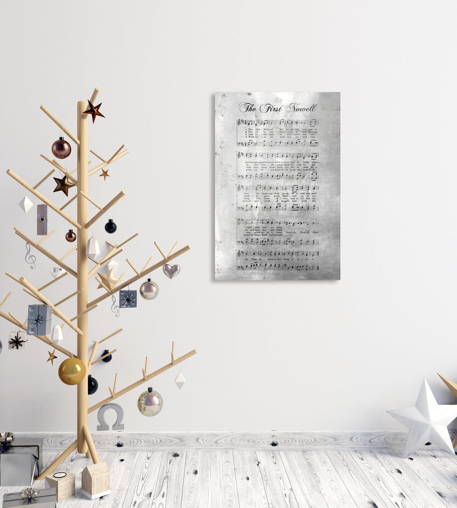 Christmas Carol Sign: The First Noel in Rustic Silver