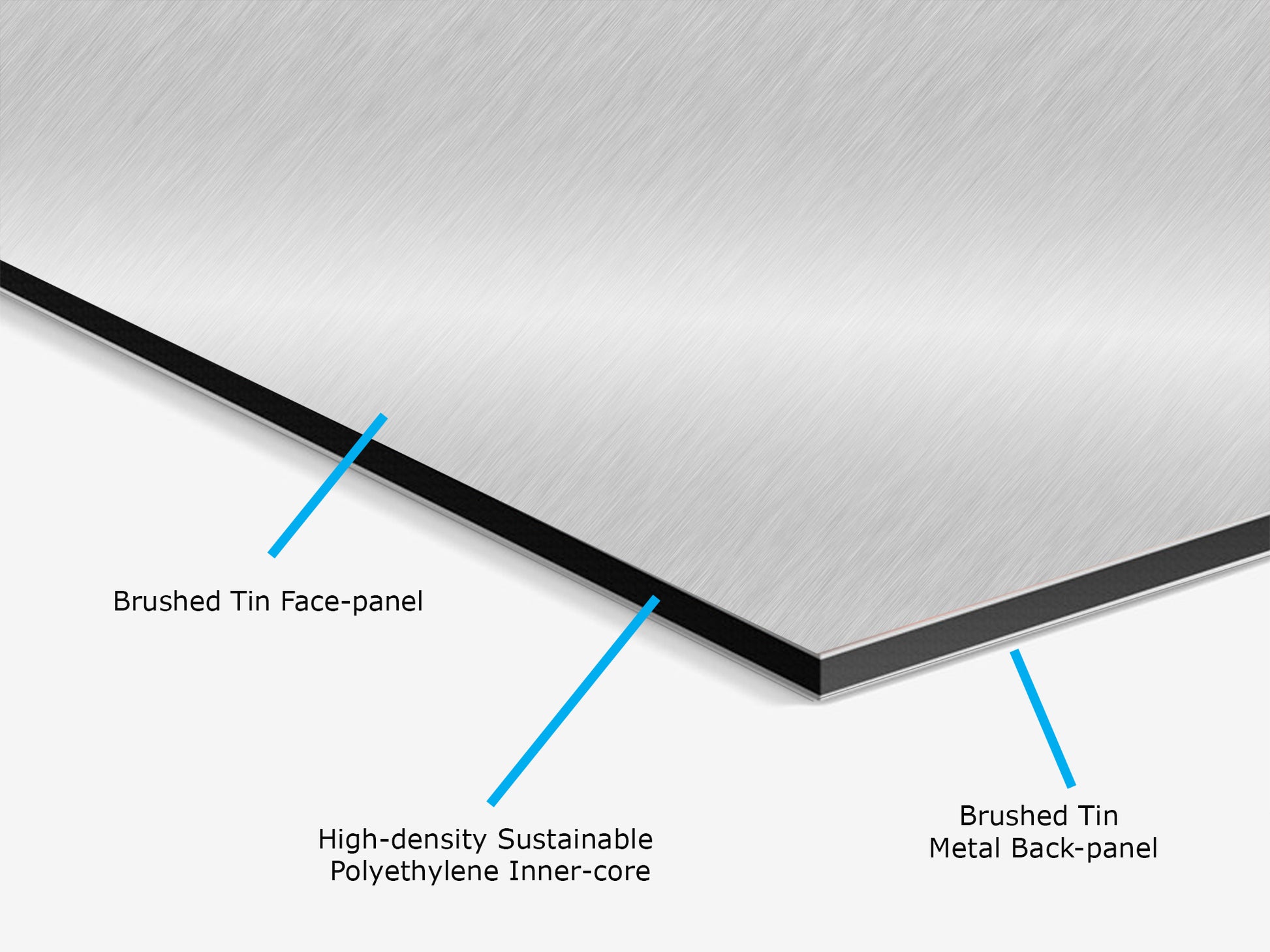 • Each sign is comprised of two brushed-tin panels (front-facing and backing) bonded to a solid polyethylene core in a continuous extrusion process.