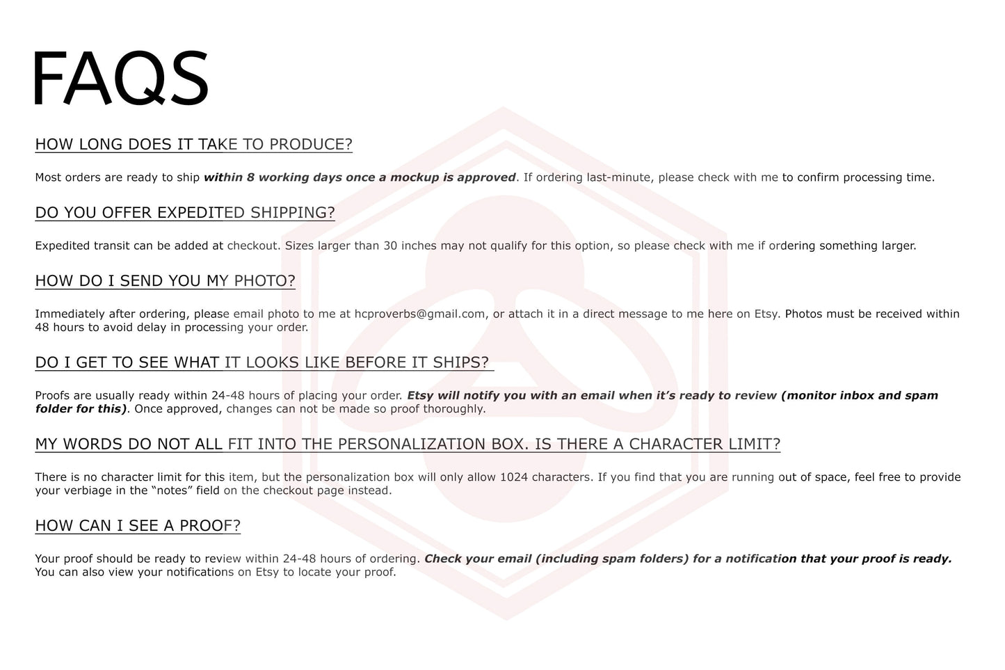 Photos: After placing your order, please send your photo to cs@hunnycombproverbs.com and include your order number in the subject line.