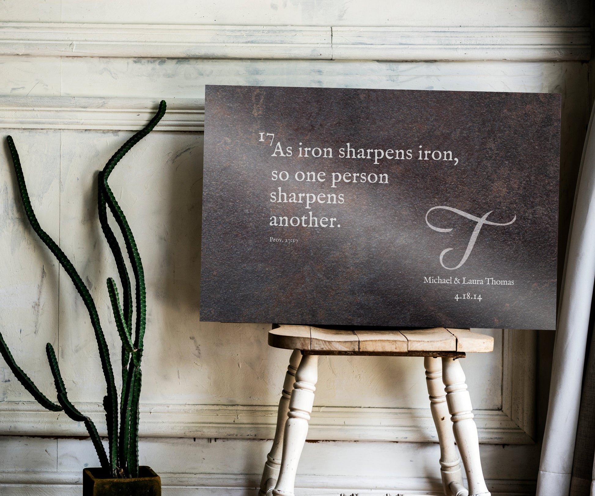 Proverbs 27:17 Personalized Iron Anniversary Scripture
