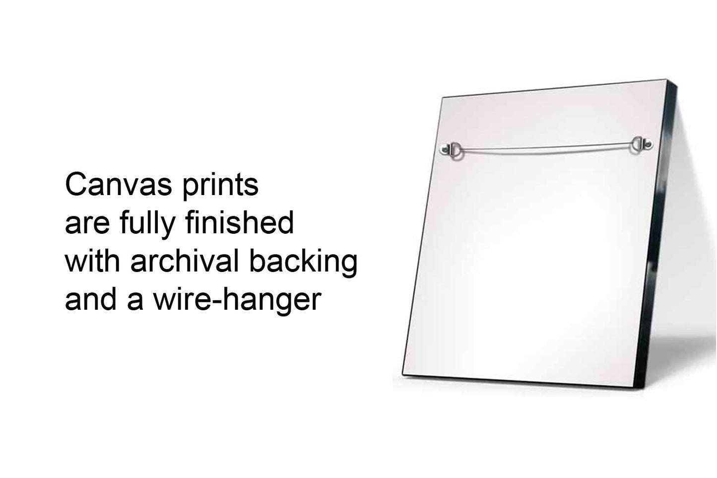 Museum quality gallery wrapped canvas printed with archival grade inks and mounted over 1.5 inch thick (depth) stretcher bars. Your canvas arrives ready to hang and is finished with an acid-free backing board on the back of the canvas and a wire hanger included at no additional charge.