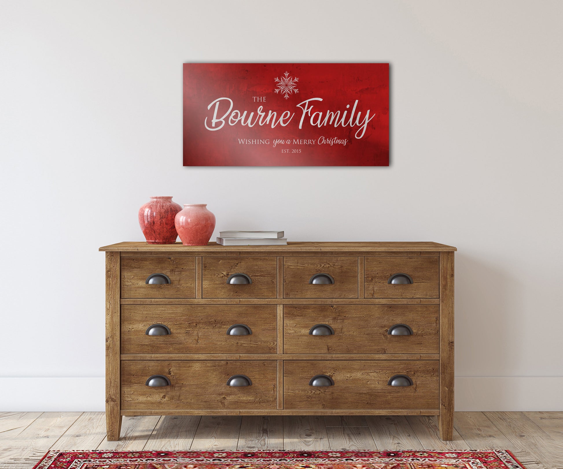 Each sign is inscribed on a unique tarnished metal panel, tinted red for a festive feel. This holiday Family sign makes a great Christmas gift, housewarming or wedding gift for loved ones.
