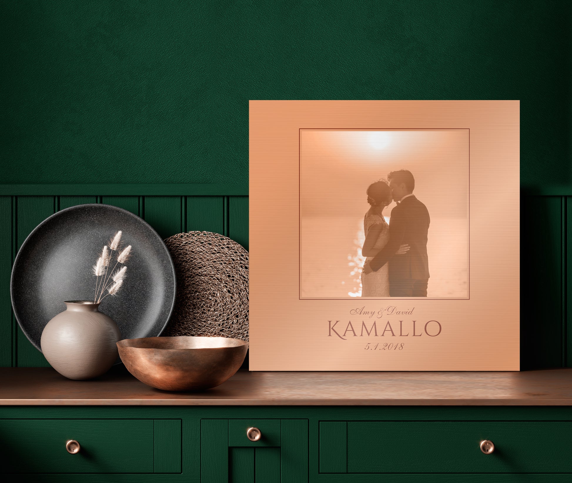 I love this copper anniversary gift I had custom made. The photo does not do it justice it is gorgeous in person. Absolute stunning, I am so happy with the product. Had to have a small thing done and the owner happily fixed it for me before it was printed. Thank you.
