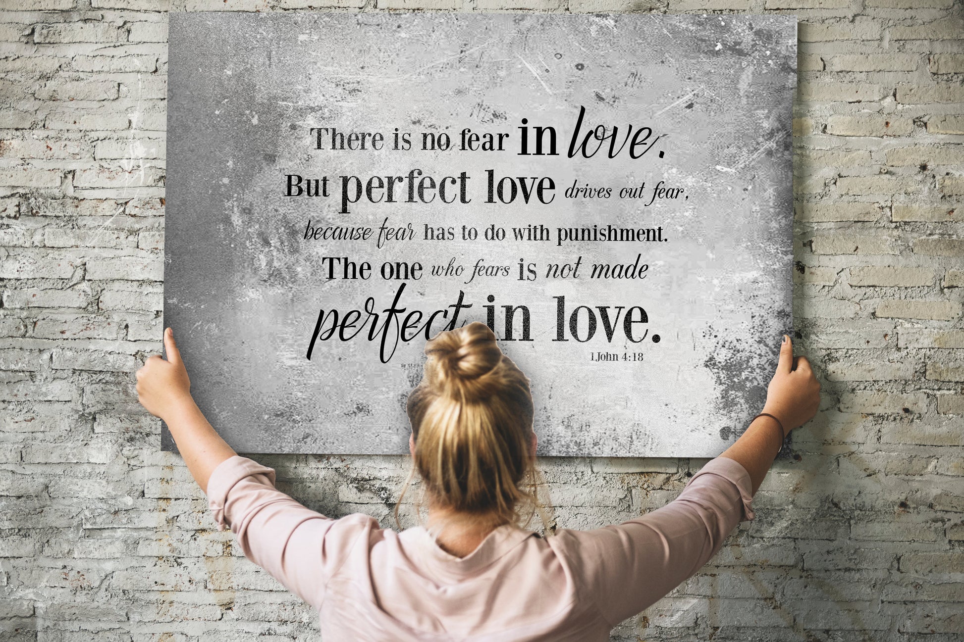 Christian monogrammed Wedding or Tin Anniversary gift: There is no fear in love. But perfect love drives out fear, because fear has to do with punishment. The one who fears is not made perfect in love.