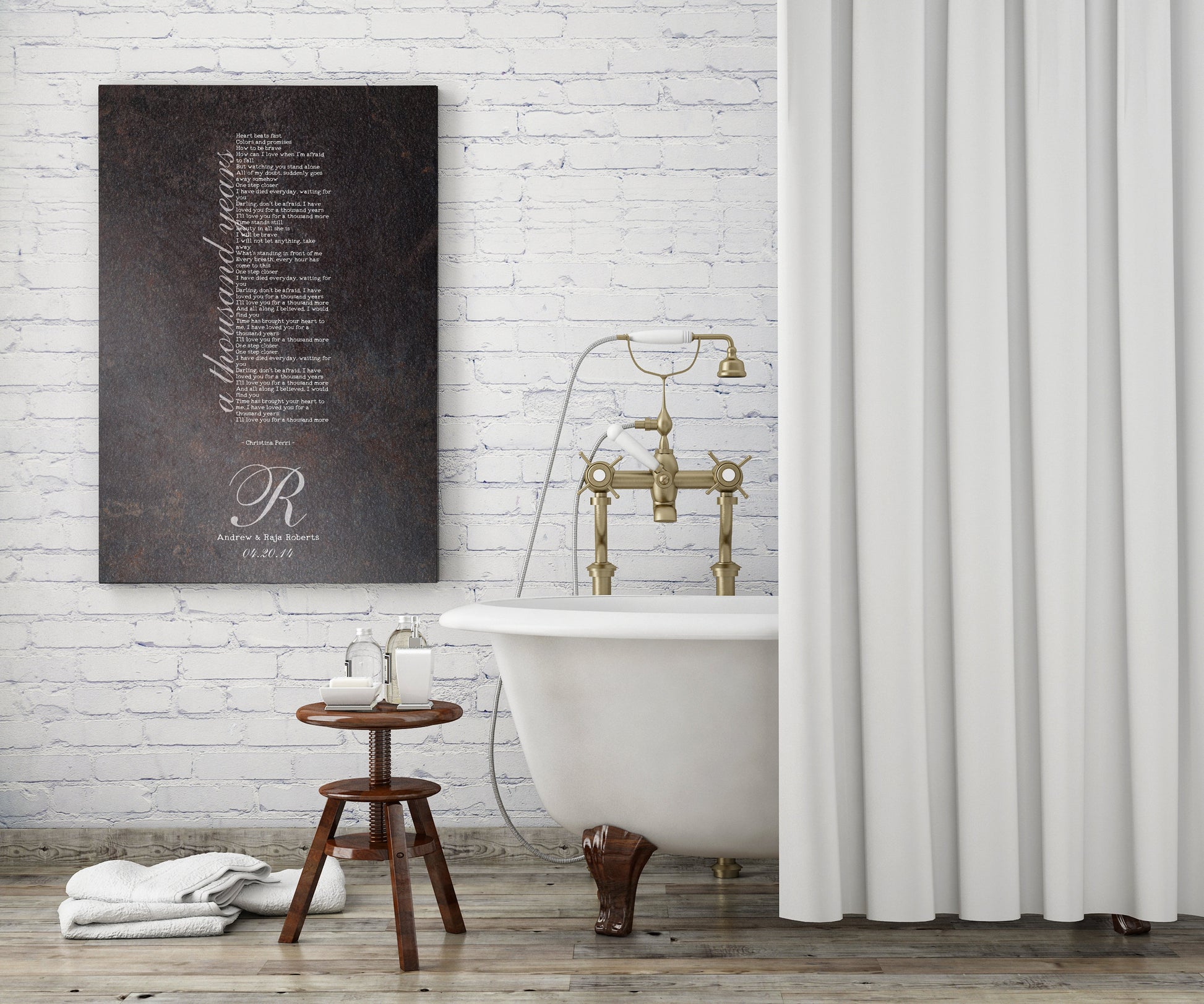 Wedding song on iron alloy aluminum - Rustic and romantic custom wall decor makes the perfect 6th anniversary iron gift. This iron/aluminum blend keepsake is personalized with your song or wording, and also features names and dates to create the perfect custom-made iron anniversary gift. Perfect for the new couple, or as a tin gift for 10th anniversary. Choose from 3 display options. Ready to hang options available for a gift that's ready to display, right out of the box.
