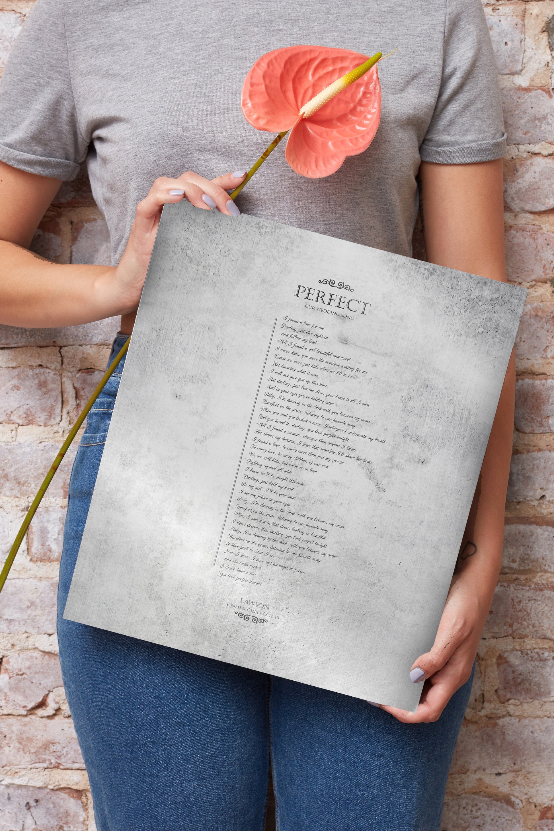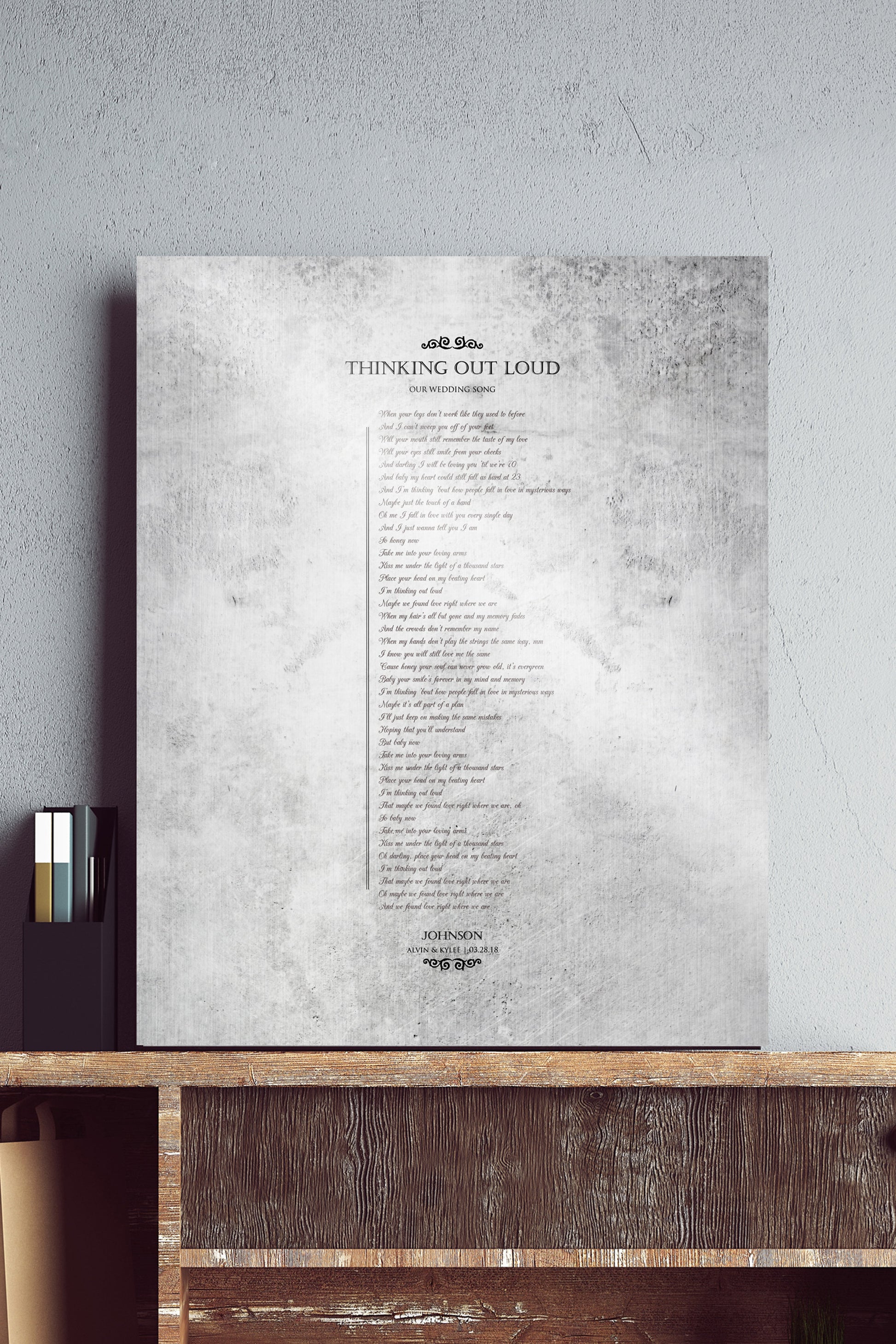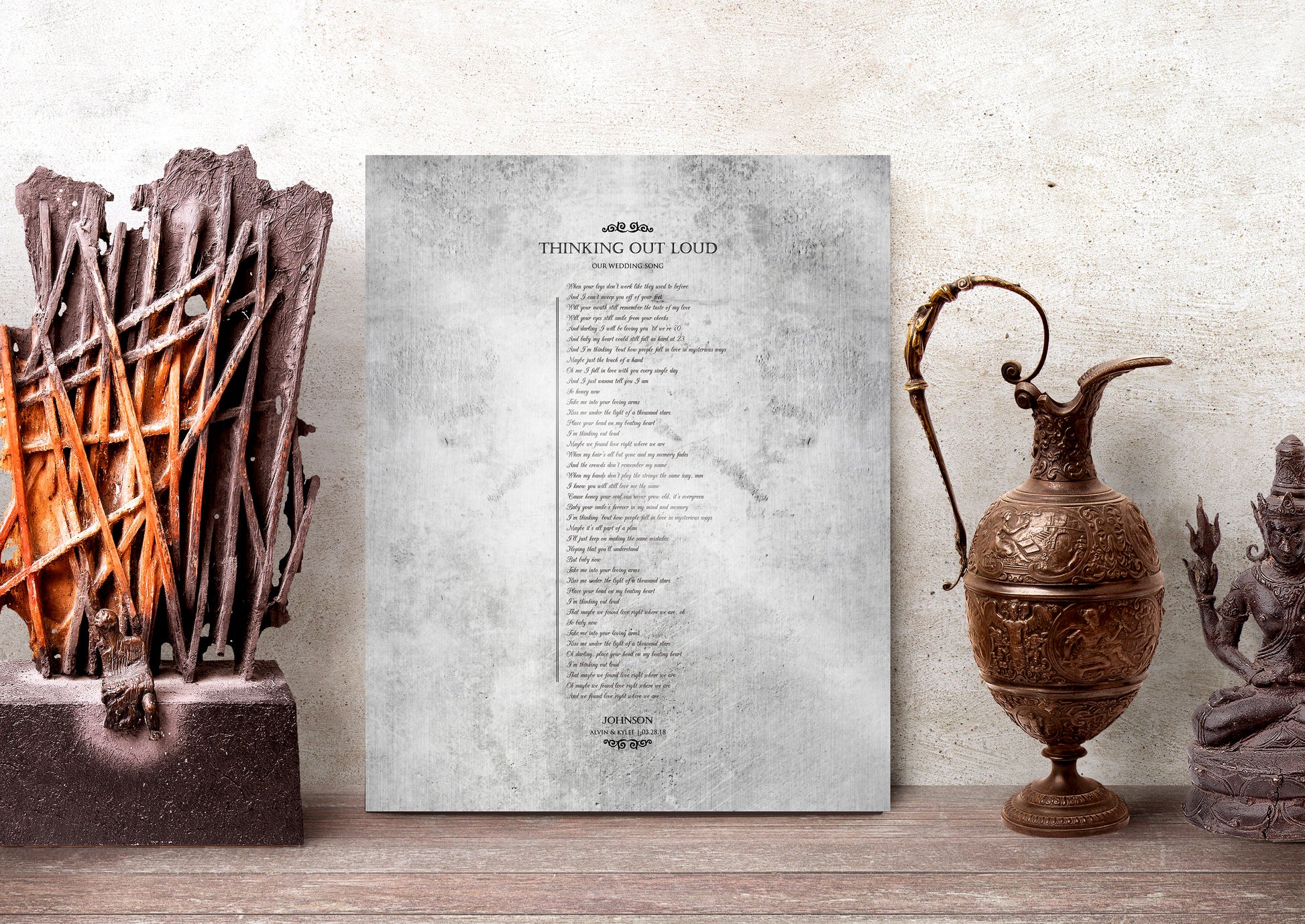 Our Song on Tin, custom tin gift for tenth anniversary or makes a beautiful wedding gift. This distressed metal print features the song lyrics of your choice, and is personalized with the couple's name and wedding date. Masculine look makes it a great gift for husbands, while the delicate typeface will make it a hit with any wife!