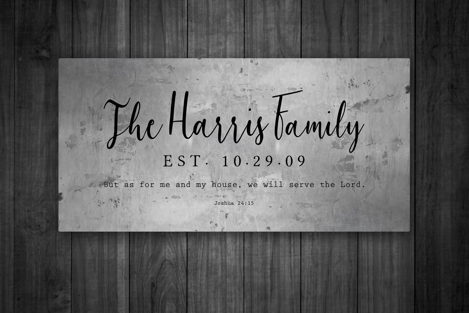 This 10 year anniversary gift for couple's makes a great tin gift. Celebrate your ten year wedding anniversary in style with a customized Personalized Family Name Sign. Industrial farmhouse style, rustic decor features the family name and date with a caption from Joshua 24:15, "But as for me and my house, we will serve the Lord". Perfect for the new couple, or as a tin gift for 10th anniversary. Ready to hang options available for a gift that's ready to display, right out of the box.