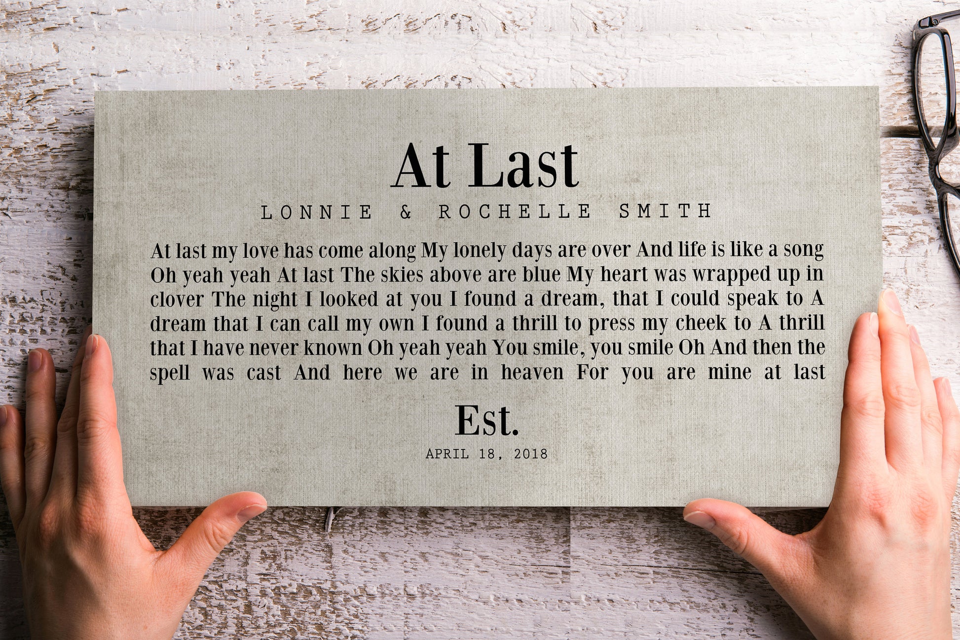 Cotton Anniversary Gift featuring song lyrics from your first dance with names on all-cotton canvas. His and Her cotton gift is the perfect thing for their 2nd wedding anniversary gift. Traditional cotton gift idea includes their wedding date too! Features their first names or family name for a minimalist, rustic style and feel. Works beautifully in any space. Simple and heartfelt, this piece is sure to please!